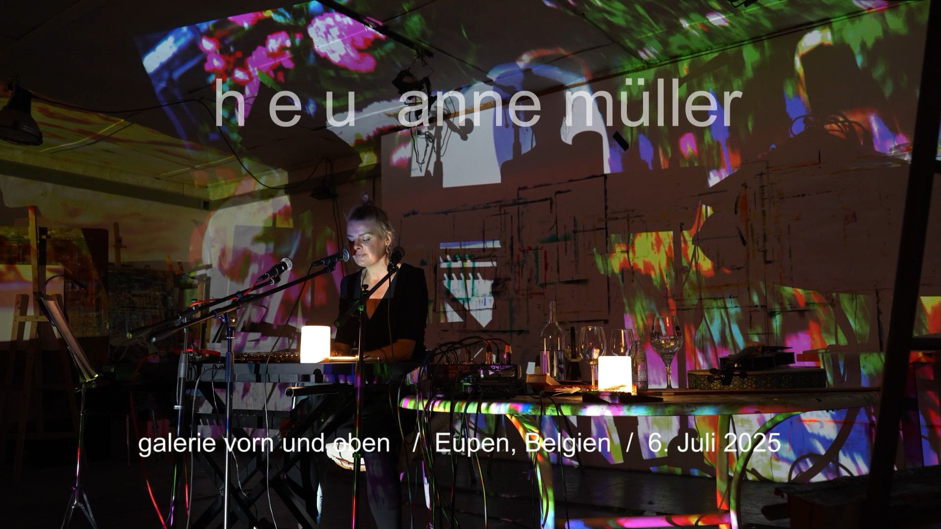 “In ihren Performances verwebt die international erfahrene Künstlerin Anne Müller Videoarbeiten, jazzigen Gesang, Querflöte und Keyboard mit gefühlvollen, abstrakten und poetischen Songtexten.